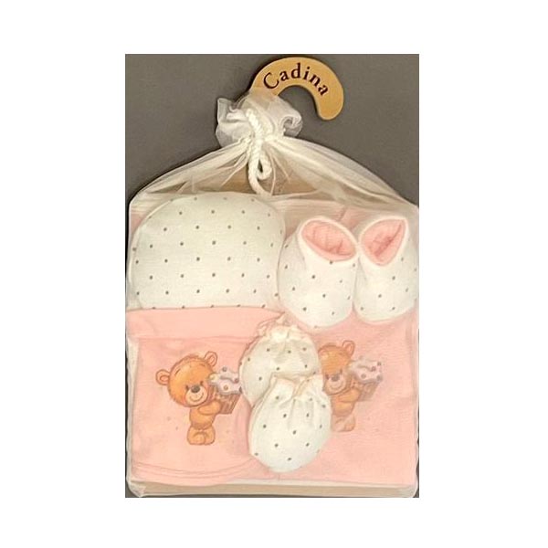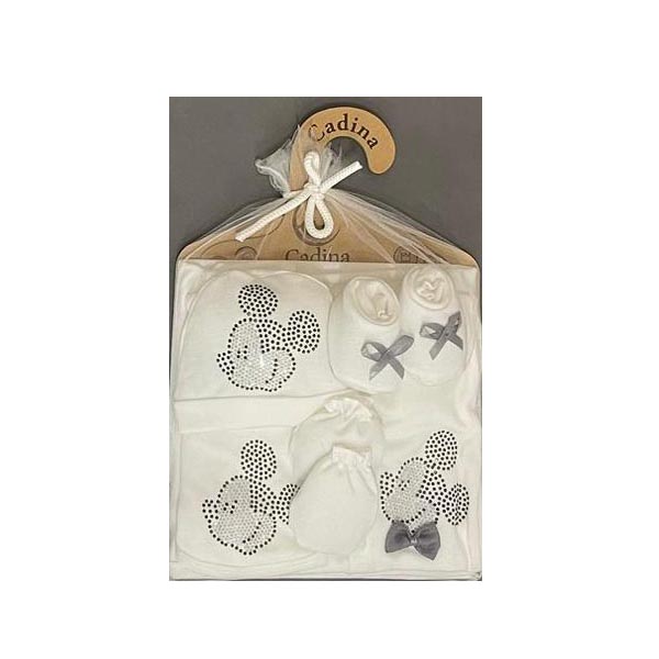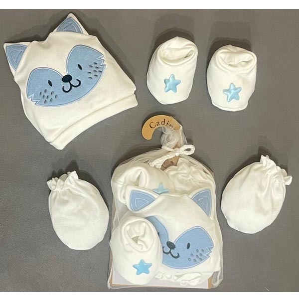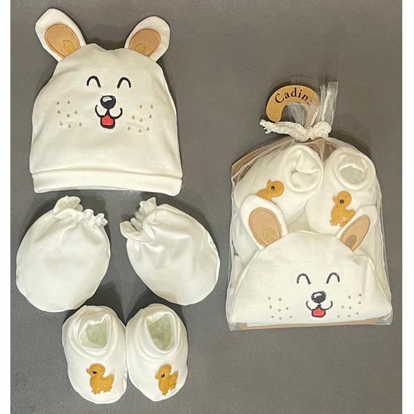 ست کلاه و پاپوش و دستکش نوزاد کادینا طرح c0025