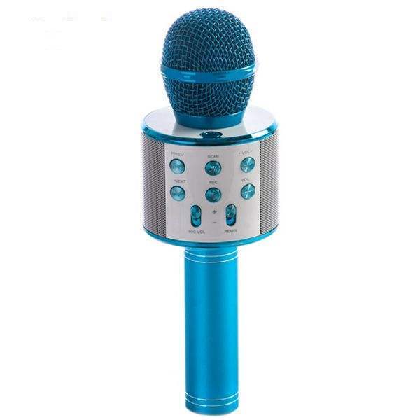 میکروفون وستر WSTER مدل WS-858 یک میکروفون همه کاره با قابلیت اتصال بی سیم (بلوتوثی) و باسیم به تلفن های هوشمند اندروید و IOS ، انواع پلیرها و کامپیوتر می باشد. این دستگاه از جنس بهترین مواد ABS و آلومینیوم ساخته شده است و مجهز به تکنولوژی کاهش نویز سه لایه می باشد. به طور خلاصه می توان امکانات این میکروفون را به این صورت نام برد: بلوتوث نسخه ۳، شیار مخصوص به کارت حافظه، دارای پورت AUX، باتری لیتیومی قابل شارژ با ظرفیت ۱۸۰۰ میلی آمپر، رادیو، دکمه های تنظیم صدا، باس، صدای زیر، ضبط صدا، کارائوکه، اسپیکر های قدرتمند و …. .