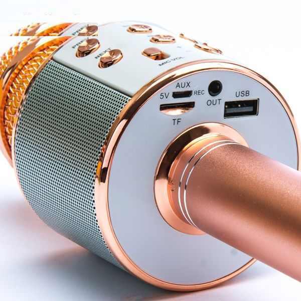 میکروفون وستر WSTER مدل WS-858 یک میکروفون همه کاره با قابلیت اتصال بی سیم (بلوتوثی) و باسیم به تلفن های هوشمند اندروید و IOS ، انواع پلیرها و کامپیوتر می باشد. این دستگاه از جنس بهترین مواد ABS و آلومینیوم ساخته شده است و مجهز به تکنولوژی کاهش نویز سه لایه می باشد. به طور خلاصه می توان امکانات این میکروفون را به این صورت نام برد: بلوتوث نسخه 3، شیار مخصوص به کارت حافظه، دارای پورت AUX، باتری لیتیومی قابل شارژ با ظرفیت 1800 میلی آمپر، رادیو، دکمه های تنظیم صدا، باس، صدای زیر، ضبط صدا، کارائوکه، اسپیکر های قدرتمند و …. .