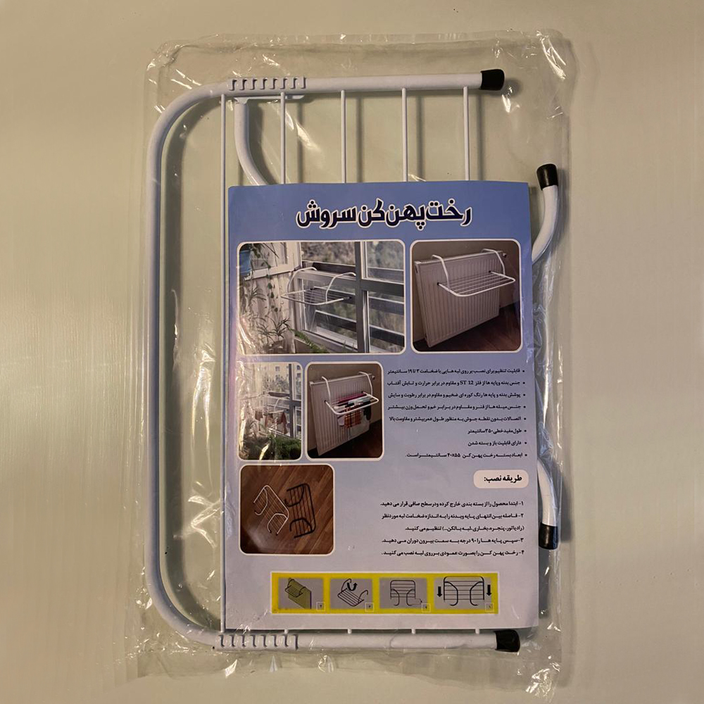 جنس کالا تمام فلزی با میله های فنری است در نتیجه بسیار محکم است و با روکش رنگ کوره ای که مقاوم در برابر حرارت و افتاب ورطوبت و سایش است. قابل تنظیم برای نصب بر روی لبه ه با ضخامت های مختلف از ۳ سانتی متر تا ۱۹ سانتی متر مانند پنجره ، رادیاتور،لبه بالکن ،بخاری و غیره اتصالات بدون استفاده از نقطه جوش است که سبب عمر طولانی و تحمل وزن بیشتر میشود دارای قابلیت باز و بسته شدن برای اشغال جای کمتر مجموع طول مفید قابل استفاده معادل با ۳۵۰ سانتی متر است