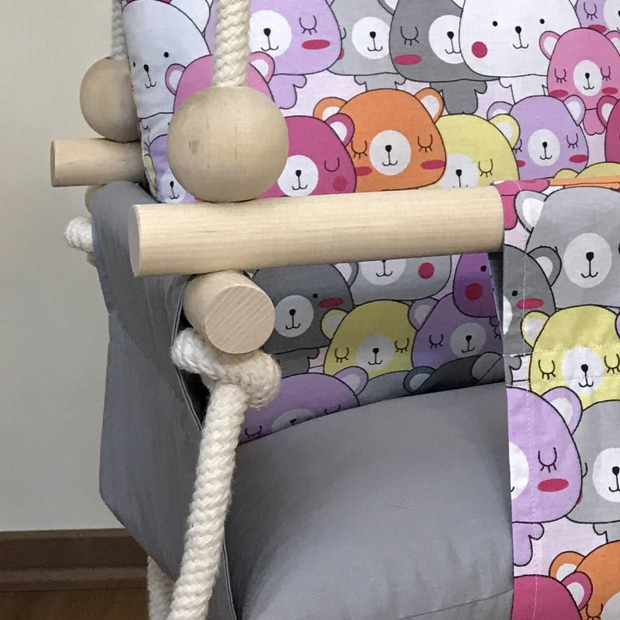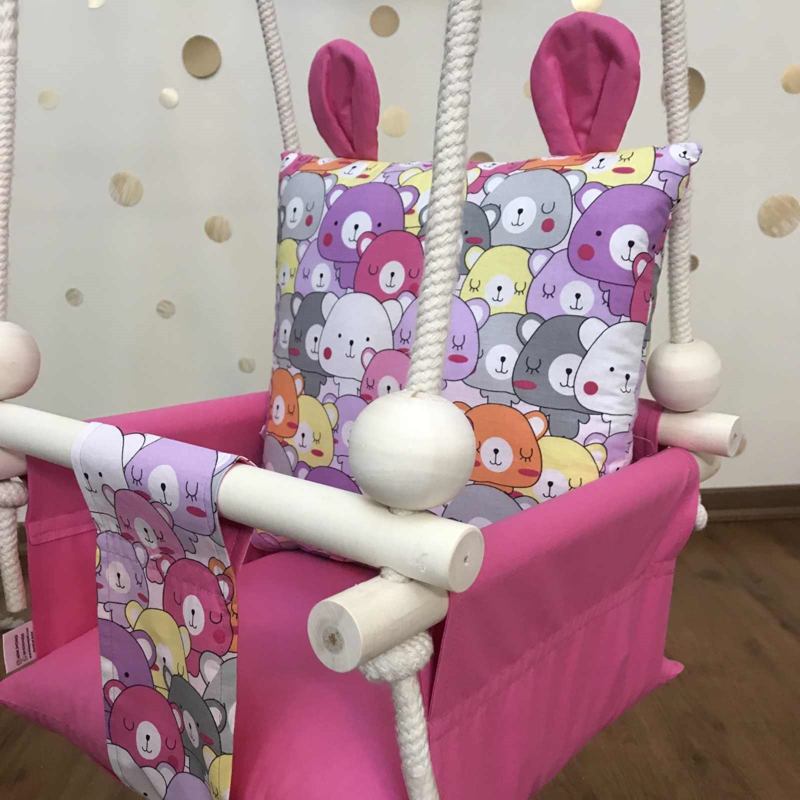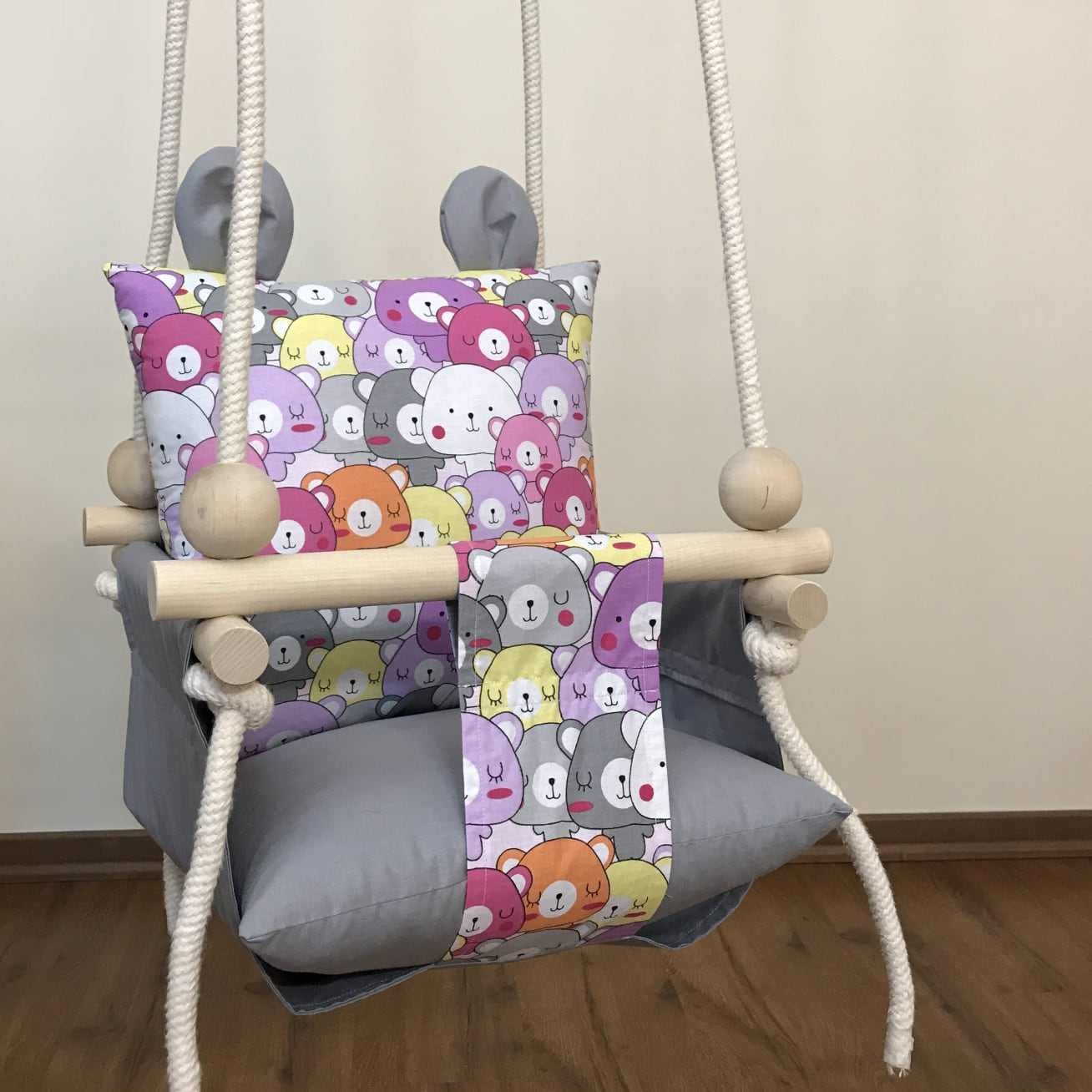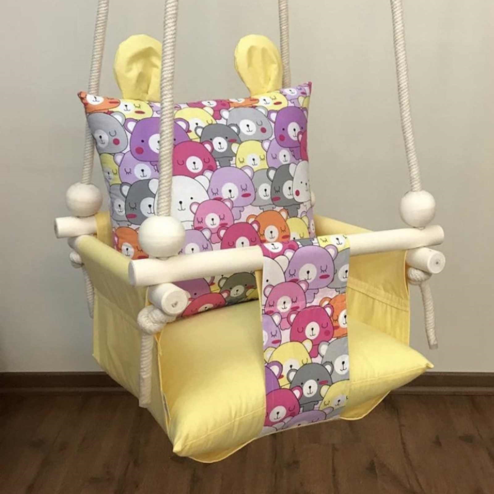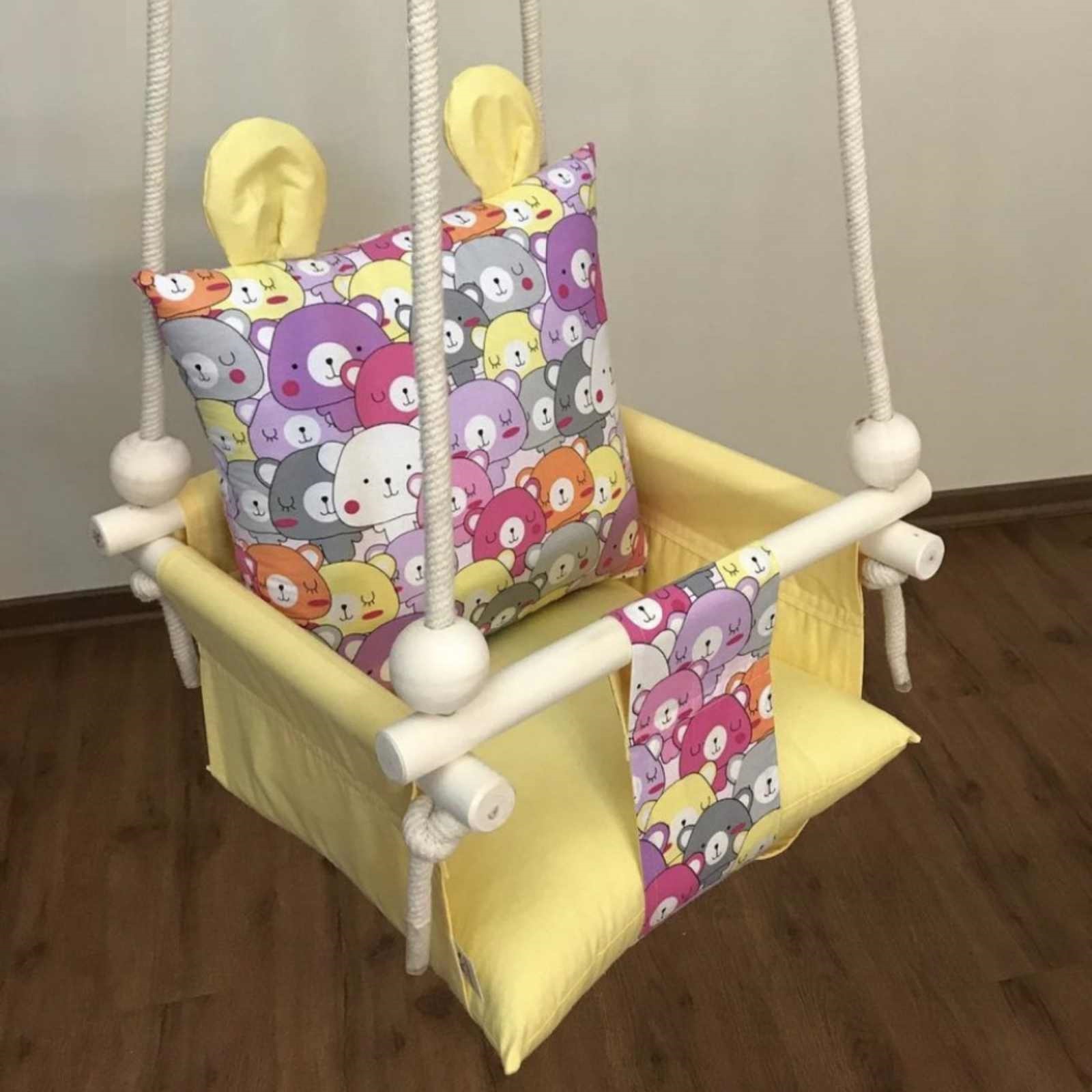 | سایر توضیحات: | – ساخته شده از چوب طبیعی – قابلیت شستشو با دور کم ماشین لباسشویی – دوخته شده با پارچه ضد حساسیت و مقاوم – قابلیت مونتاژ ساده – قابلیت استفاده در خانه و در طبیعت – قابلیت آویزان کردن از بارفیکس و سقف |