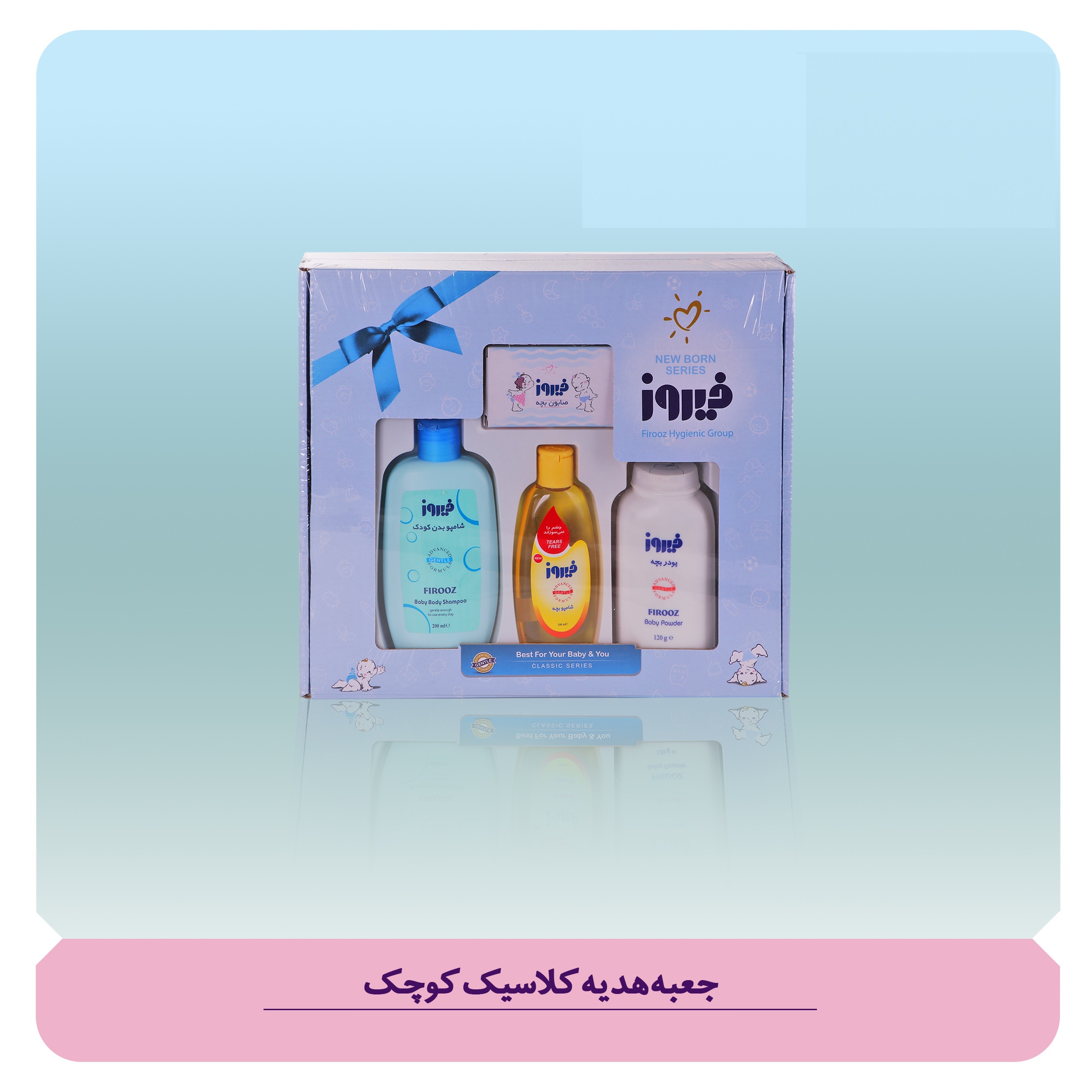 جعبه هدیه کلاسیک کوچک فیروز مجموعه ای از محصولات ضروری برای نوزادان و کودکان با بسته بندی زیبا است. یکی از رسوم زیبای ما ایرانی ها خرید چشم روشنی برای مادران باردار هستش. بی شک مهمترین ملاک برای انتخاب یک هدیه کاربردی بودن آن به نسبت نیاز و سن فرد هدیه گیرنده است. مطمئنا انتخاب یک هدیه مناسب که جز نیازها اساسی و ضروری نوزاد از بدو تولد باشد می تواند بهترین گزینه باشد. جعبه هدیه کلاسیک متوسط فیروز شامل محصولات بهداشتی و شوینده است که مناسب جهت استفاده نوزدان از بدو تولد می باشد.