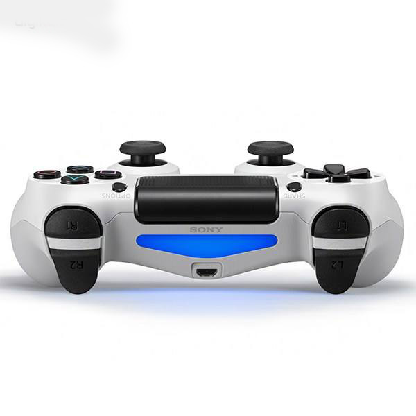 Glacier White یک تغییر جذاب در محصولات سونی می باشد. حتما میدانید که این شرکت دستههایی بهمراتب متفاوت مانند Glacier White با نام DualShock 4 تولید کرده است. بدون تردید باید گفت که Dual Shock 4 بهترین دستهی بازی است که سونی تابهحال تولید کرده است. Glacier White تفاوت بسیار زیادی به سلف پیشین خودش یعنی دوالشاک ۳ دارد. در دستهٔ جدید شاهد چند ویژگی جدید هم هستیم که عبارت هستند از پد لمسی خازنی و اضافه شدن دو کلیک دیگر در جلوی دسته که مکانیزم کلیکی (غیر لمسی) دارند. دو استیک استاندارد شستی، پد دکمههای جهتدار در قسمت سمت چپ و پد دکمههای عملکردی در سمت راست و چهار دکمه در قسمت بالا همچنان فرم اصلی را تشکیل میدهند. بعلاوه حسگر تشخیص تراز و موتور لرزانندهی Dual Shock 3 با مقداری بهبود حفظ شدهاند.همچنین یک اسپیکر، یک تاچ پد بزرگ قابل کلیک، یک ستون نور، دو دکمهی Share و Option بهجای دکمههای سنتی Start و Select از آن جمله هستند. شاید Screen Shot کمترین جذابیت را داشته باشد. به صورتی که وقتی دکمهی Share را میفشارید و نگه میدارید، میتوانید عکس صحنههایی از بازی را بر روی فیسبوک یا توییتر آپلود کنید. بهعلاوهی یک مسیج در زیر آن. لازم به ذکر است که بعد از هر 3 یا 4 ساعت استفاد نیاز به شارژ دوبارهی است. میتوانید دسته Glacier White را با اتصال از طریق کابل Micro USB به کنسول شارژ کنید.