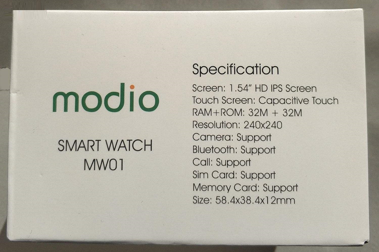 شرکت Modio یکی از زیر مجموعه های شرکت معتبر G-tab است که یکی از شرکت های چینی مطرح و زبانزد در کیفیت محصولات خود می باشد. بیشتر محصولات این شرکت در رده ارزان قیمت ها دیده می شوند. اما با این حال از بی عیب و نقص ترین ها هستند. MW01 این شرکت همان W101 مشهور است با این تفاوت که ایرادی از این مدل نمی توان گرفت . باتری با دوام تر، بلوتوث قوی، بدنه با استحکام، منوی های دقیق و ….. دقت کنید در پشت درب ساعت برند Modio درج شده است. مدل «MW01» در کنار کیفیت مطلوب و طراحی شیک، قابلیتهای ویژه و حایز اهمیت دیگری نیز دارد که به محبوبیت این مدل میافزاید. ویژگی که برای اکثر طرفداران این گجتها مورد اهمیت واقع است قابلیت نصب سیمکارت و کارت حافظه بوده که با کمک میکروفون و اسپیکر داخلی، مدل Modio را به یک تلفن همراه مچی تبدیل شده است. ویژگی دیگر این مدل که به هنگام اتصال به گوشی هوشمندتان و نصب برنامه تحت اندرویید«FUNRUN» و یا «Bt Notification» که با استفاده از اسکن کردن QR code داخل ساعت میتوان دانلود کرد فعال میشود، قابلیت نمایش اعلانات شبکههای اجتماعی،نمایش و پاسخ دادن به تماسهای ورودی، نمایش و پاسخ به پیامکهای تلفن همراه از طریق ساعت، قابلیت ضد سرقت و… است.