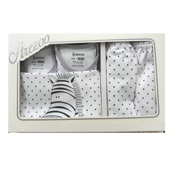 ست ۵ تکه لباس نوزاد زیر دکمه دار آرزو طرح گورخر