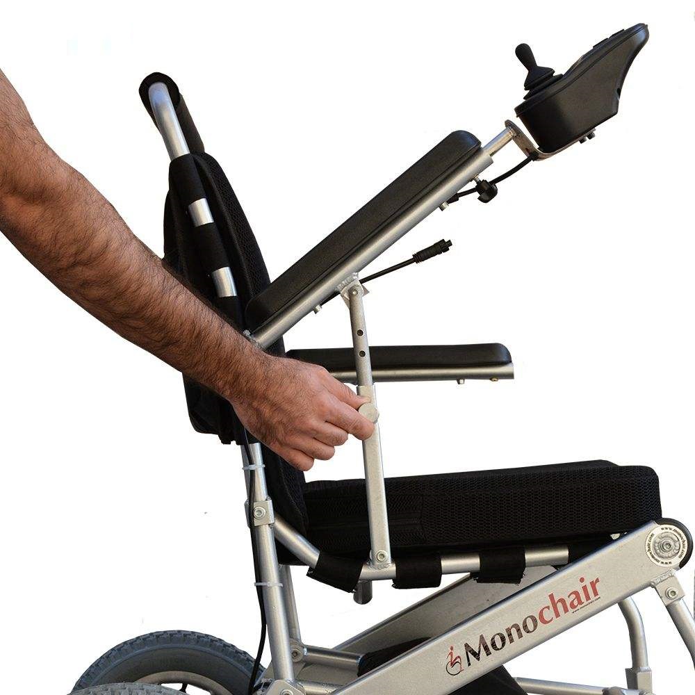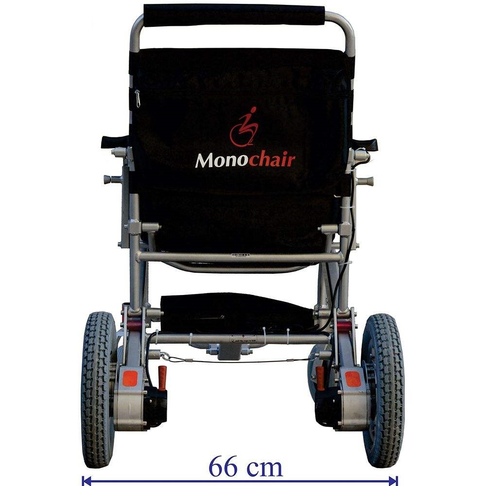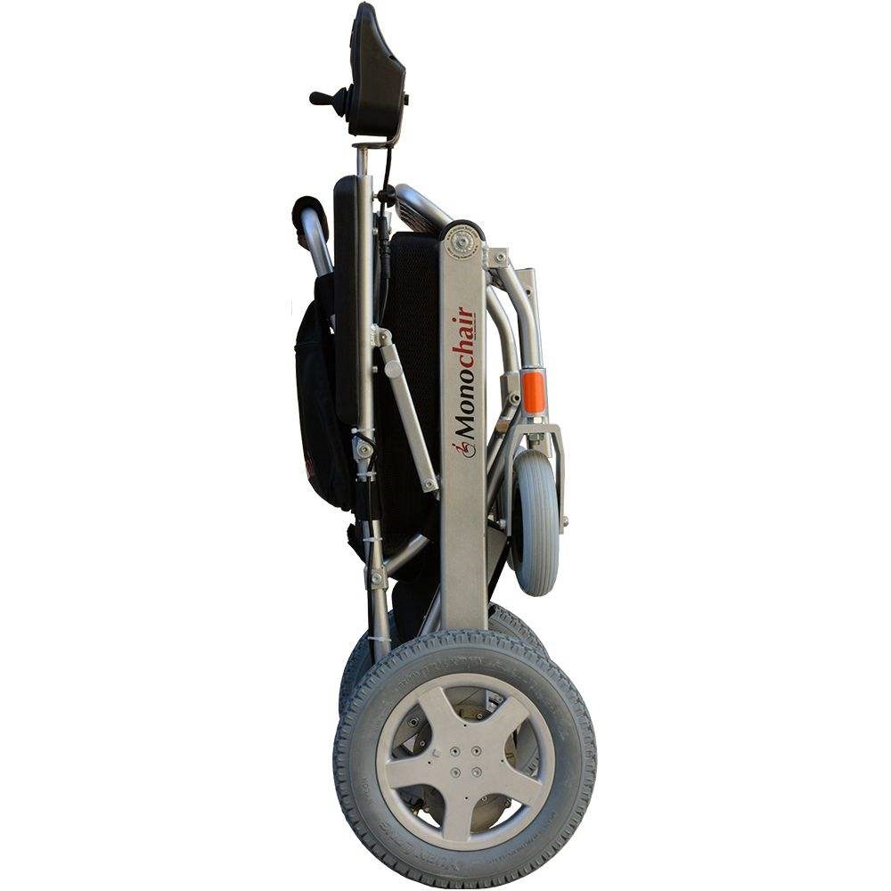 در ویلچرهای برقی، یکی از مهم ترین فاکتورها، وزن و حجم محصول است. عوامل مختلفی می تواند در وزن محصول تمام شده موثر باشد. از این عوامل می توان به جنس بدنه، نوع موتور، نوع باتری و… اشاره کرد. درساخت بدنه ویلچر برقی مونوچیر از آلومینیوم آلیاژی استفاده شده که علاوه بر ایجاد ظاهری زیبا و مقاوم، وزن ویلچر را به شکل چشم گیری کاهش داده است به طوری که وزن بدنه به تنهایی ۹ کیلوگرم می باشد. بهره بردن از موتورهای بدون جاروبک (براشلس) یکی دیگر از عوامل کاهش وزن این محصول می باشد. موتورهای بدون جاروبک، علاوه بر وزن کم تر، راندمان و عمر مفید بالاتری نسبت به موتورهای قدیمی تر دارا می باشند. استفاده از باتری لیتیومی نیز در وزن این محصول موثر است. باتری این ویلچر، تنها با وزن یک و نیم کیلوگرم توانایی حرکت دادن آن را تا مسافت ۱۰ کیلومتر با یک بار شارژ دارد. طراحی بدنه این محصول به گونه ای است که در حالت بسته فضای کمی را اشغال می کند به طوری که در انواع خوروهای سواری به راحتی جا می گیرد.