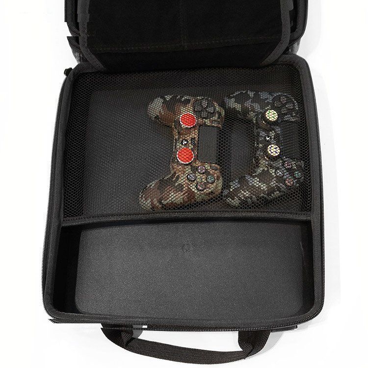 کیف مخصوص و ضدضربه کنسول Playstation 4 Pro این امکان را برای شما فراهم میکند تا با خیالی آسوده کنسول خود را جابجا کنید. این کیف فضای کافی برای قرار دادن DualShock 4 کنسول شما را نیز دارد و در کنار آن میتوانید کابلهای کنسول را نیز قرار دهید. کیف ضدضربه PS4 طوری طراحی شده که کنسول با دیگر وسایل برخوردی نداشته باشد و یک لایه محافظ در وسط کیف از این امر جلوگیری میکند. برای محافظت از کنسول و وسایل دیگر همراه آن، درون کیف لایه ویژهای وجود دارد. یک بند چسبی نیز روی کنسول قرار میگیرد تا مانع از حرکت آن شود. برای حمل و نقل ساده کنسول، یک بند هم درنظر گرفته شده و میتوانید آن را نصب کنید و کیف را روی دوش خود بیندازید. نوع پدهای محافظ داخل این کیف از نوع Aircell یا سلولهای هوایی بوده که به بهترین نحو از کنسول شما محافظت میکند.