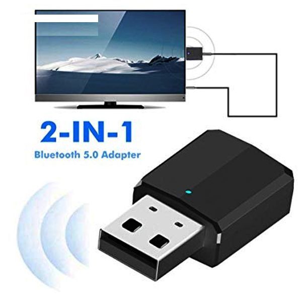 گیرنده و فرستنده صدای بلوتوثی ورژن 5 از جمله دانگل صدای بلوتوثی با کیفیت نسل جدیداست. تنها با اتصال این دانگل به پورت USB برق آن تامین می گردد و با اتصال کابل صدا به این دانگل و دستگاه مورد نظر از این دانگل بلوتوثی جهت ارسال یا دریافت صدا از دستگاههای بدون بلوتوث مانند تلویزیون ها و پخش کننده های صوتی خانگی و خودرو که دارای پورت خروجی جک 3.5 میلیمتری یا RCA یک به دو صدا هستند، میتوان استفاده کرد.این دانگل دارای نشانگر LED بوده که در هنگام ارسال به رنگ قرمز و در هنگام دریافت به رنگ آبی درمیاید.از این دستگاه میتوان برای ارسال صدا از تلویزیون به هدفون بلوتوثی و یا موبایل به پخش کننده خودرو بهره گرفت.
